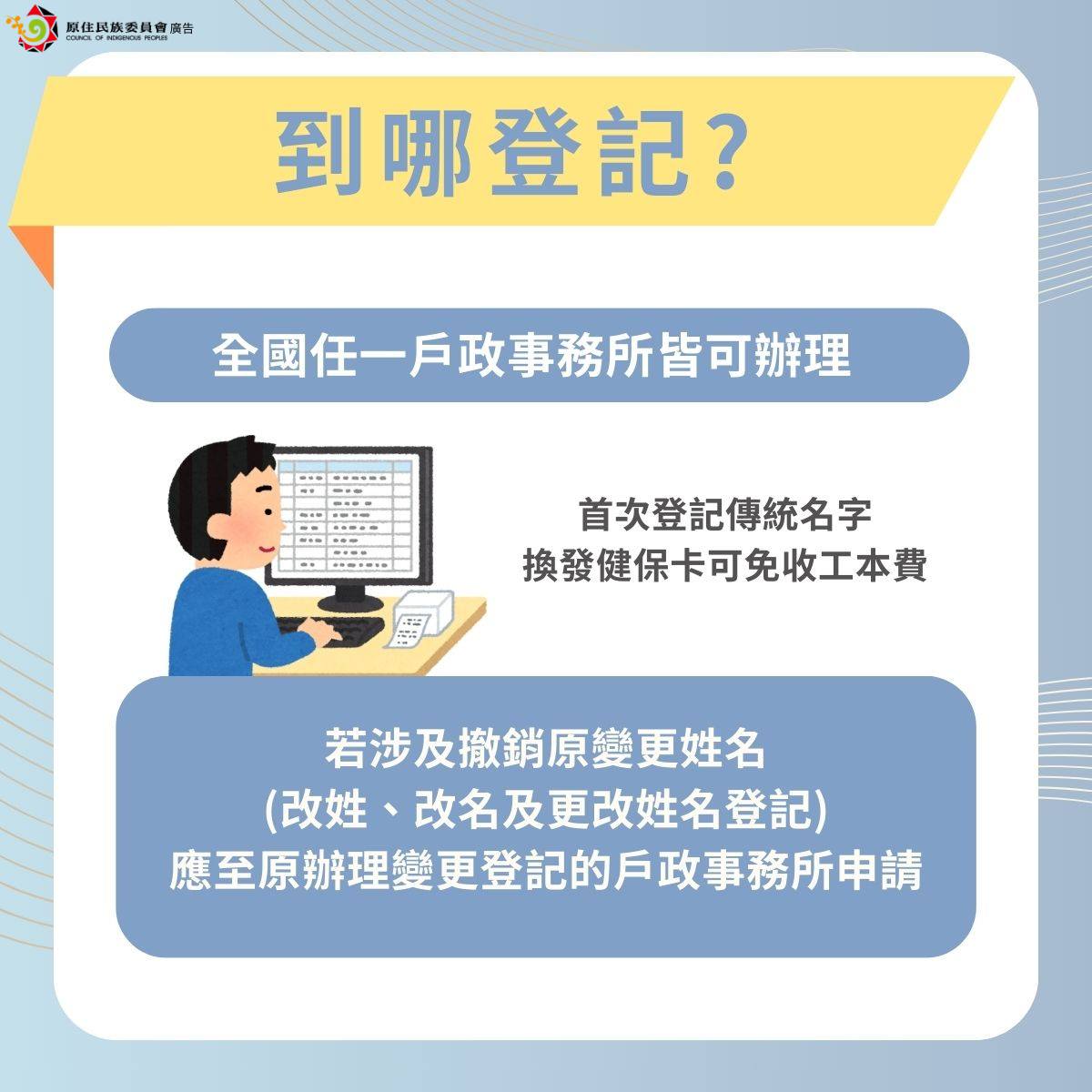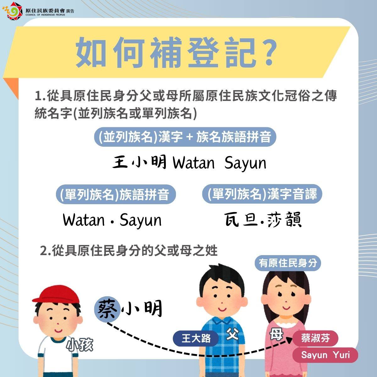 原民會最後表示,族人如有疑問,可就近洽詢戶政事務所,或電洽原民會業務單位(電話:02-8995-3456分機3690)詢問。